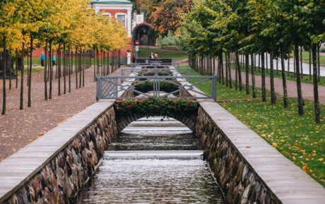 In the course of the reconstruction of the Ülemiste traffic junction, additional facilities for stormwater drainage needed to be constructed. In the past, Kadriorg Park, which is not far from the Ülemiste traffic junction, included a system of drainage ditches and canals, which were planned to be restored in part, but the problem was getting water into the canals. Thus, designs were developed to provide solutions to two problems: a stormwater drainage system was built for the Ülemiste traffic junction and the system of canals and ponds in Kadriorg Park was restored to receive the water drained off. Under the project, 1.8 km of piping was installed, canals and cascades were built from concrete, totalling approximately 1.2 km, and ten bridges for non-motorised road users were designed. A circular canal was restored in its historical location in the lower garden in front of the Kadriorg Art Museum, and the concrete structures of the canals were finished with granite stones excavated during the construction of the canals. Additionally, an artificial pond was built, as well as a cascade that brings a charming stream of running water to the park. Concrete elements were skillfully used to add new dimensions to the landscape and the historic structures. The designs developed addressed stormwater drainage, canals, the roads and utilities necessary for the functioning of the stormwater drainage system, as well as roads and utilities that were in the way of the construction of the stormwater drainage system or the canals.