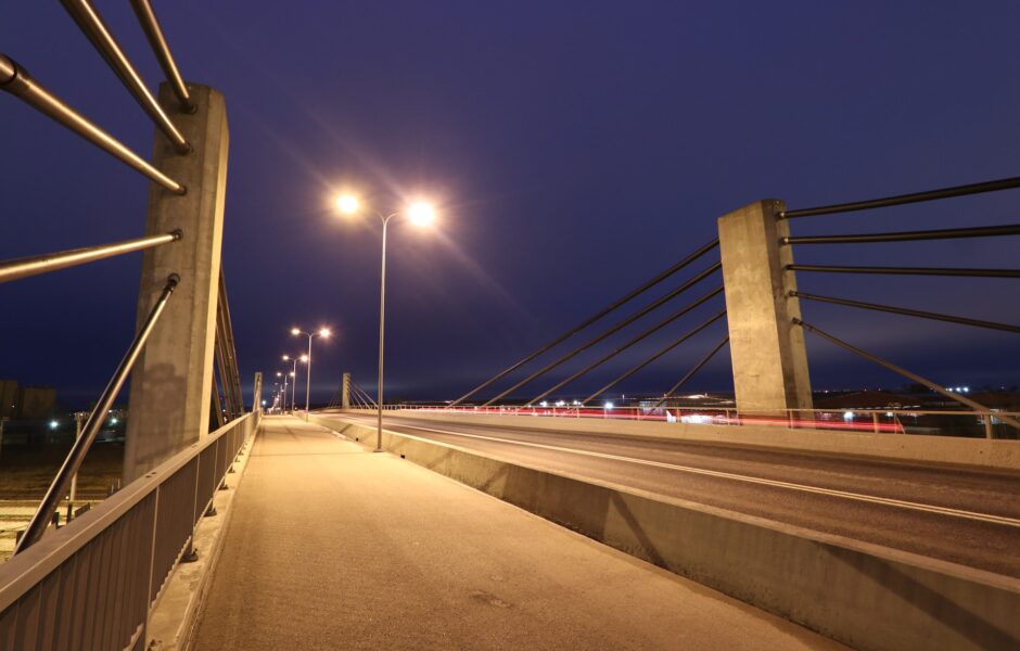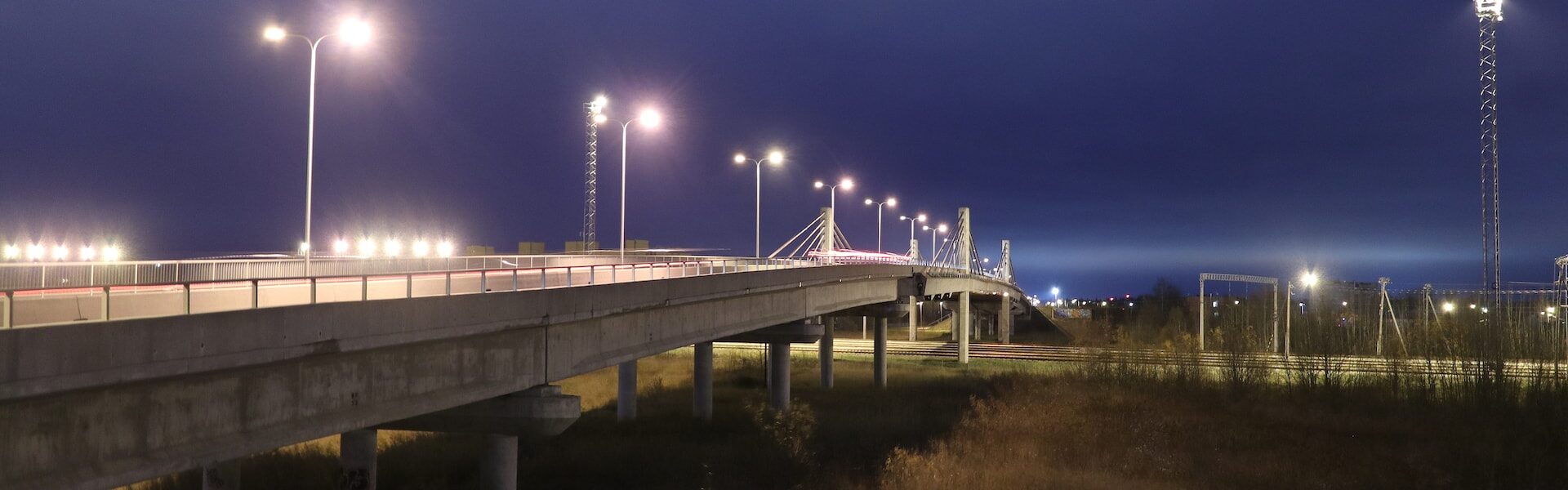 The extension of Smuuli tee was necessary in order to reduce the traffic load at the Ülemiste intersection by connecting Peterburi tee and Suur-Sõjamäe Street and to provide an alternative way to cross the railway in addition to Tartu maantee and the Tallinn Ring Road. Construction began in 2005 and saw the completion of a 1.8-kilometre-long extension of Smuuli tee as well as a 370-metre-long viaduct set on concrete piles. The middle section of the viaduct, which crosses over a nine-track railway, was built as an 85-metre-long cable-stayed bridge. In addition, a four-metre-wide shared-use path was also built on the viaduct, a street lighting system was set up, and sewerage and drainage for domestic water and stormwater were constructed. The total budget for the work was 87.7 million Estonian kroons. On 22 June 2007, the Mayor of Tallinn, Edgar Savisaar, formally opened the railway viaduct of Smuuli tee for traffic. A second stage of construction is currently also planned for the future, in which the existing roadway and viaduct are to be expanded to have 2 + 2 lanes.